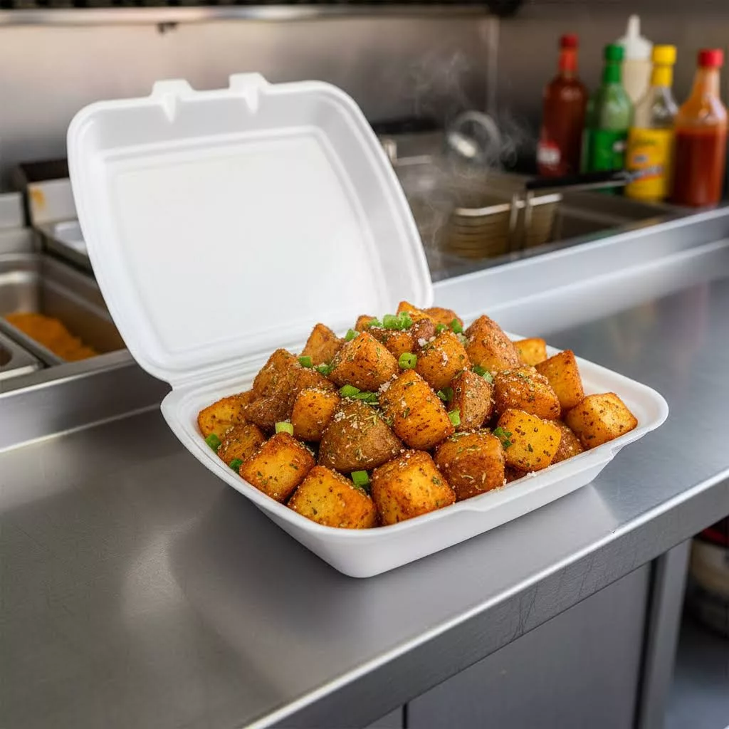 Ez a doboz egyben van a tetővel, ami nem csak a tartósságát növeli, de egyszerűsíti a használatát is. Az erős és vastag XPS anyag megakadályozza az étel szivárgását és összenyomódását, így a vendégek mindig úgy élvezhetik az ételeiket, ahogyan azt elvárnák egy éttermi környezetben.