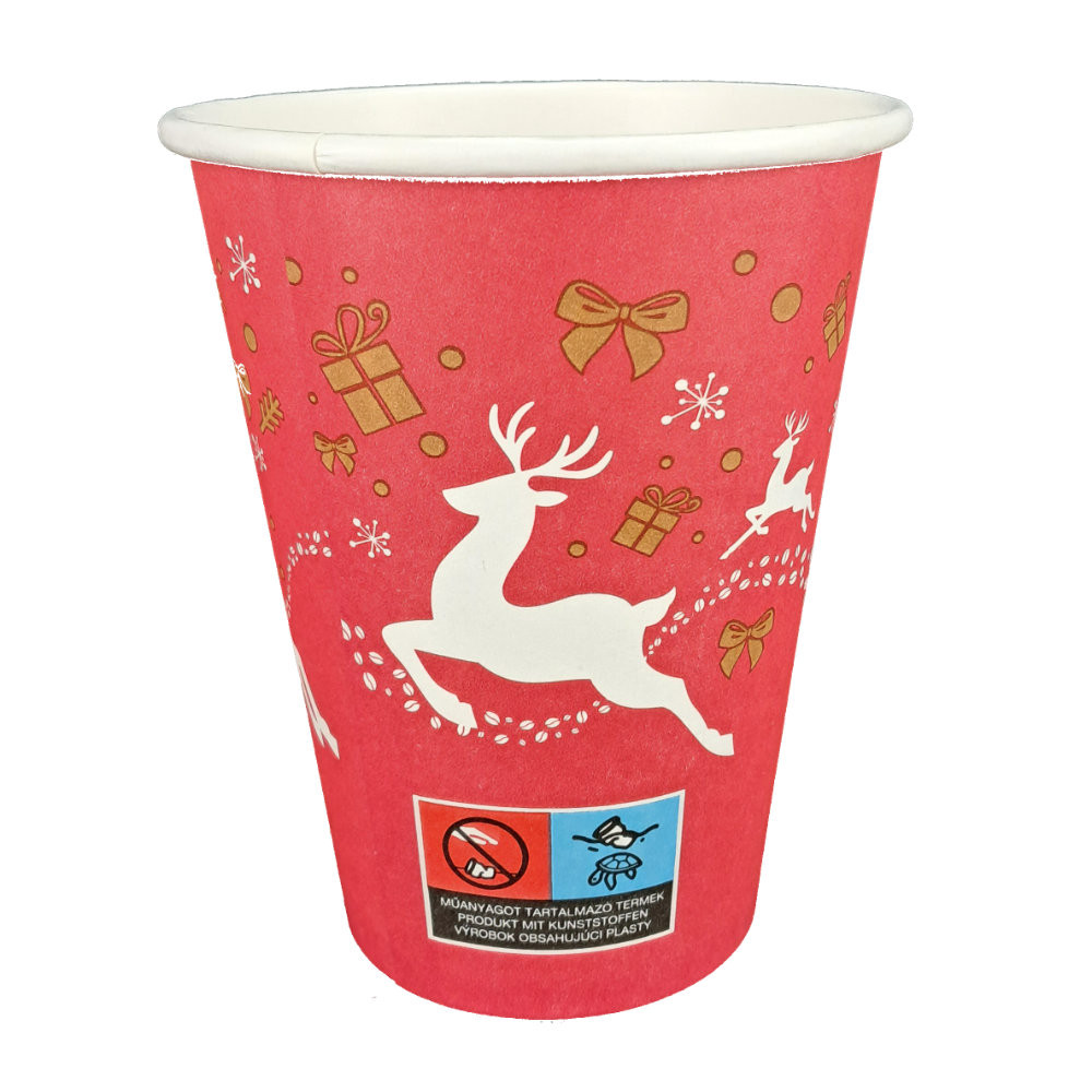 Karácsonyi papírpohár, piros 3 dl - 12oz
