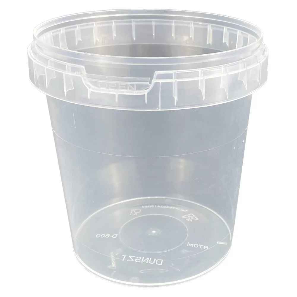 A vödör anyaga PP (polipropilén), ami szelektíven gyűjthető és újrahasznosítható. A mérete 870 ml, magassága 122 ml, alsó átmérője 92 mm, felső átmérője 118 ml. A tetőt külön kell megvásárolni. Minimális rendelési mennyiség 200 db.